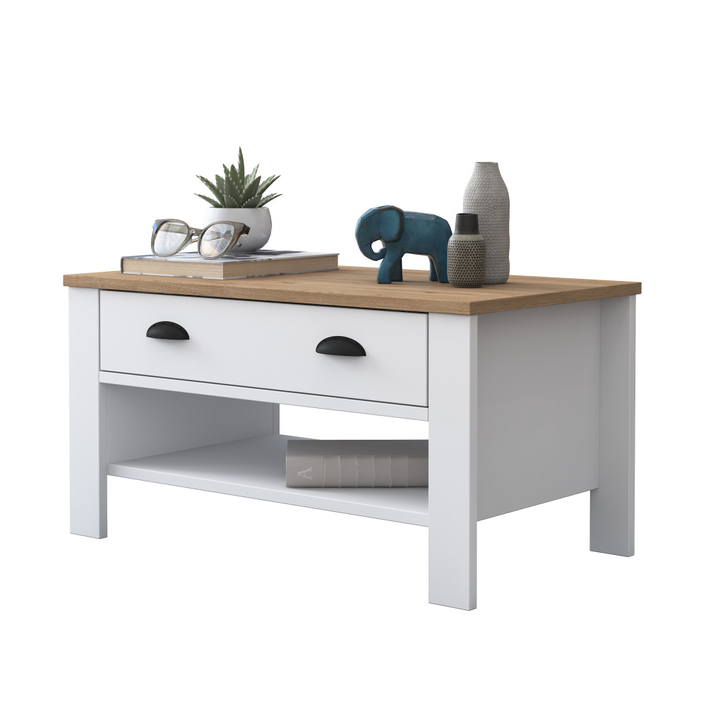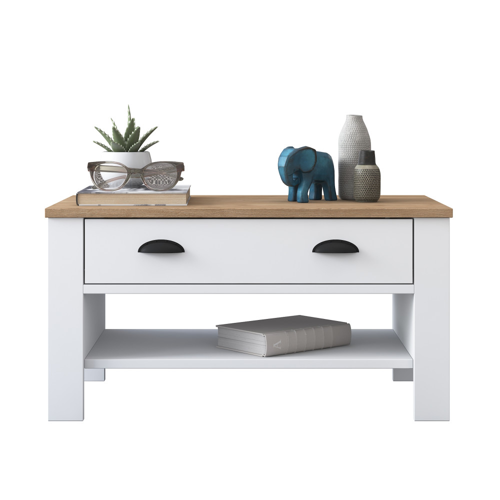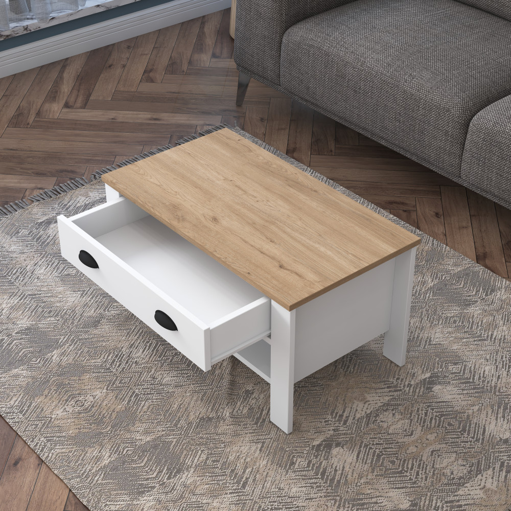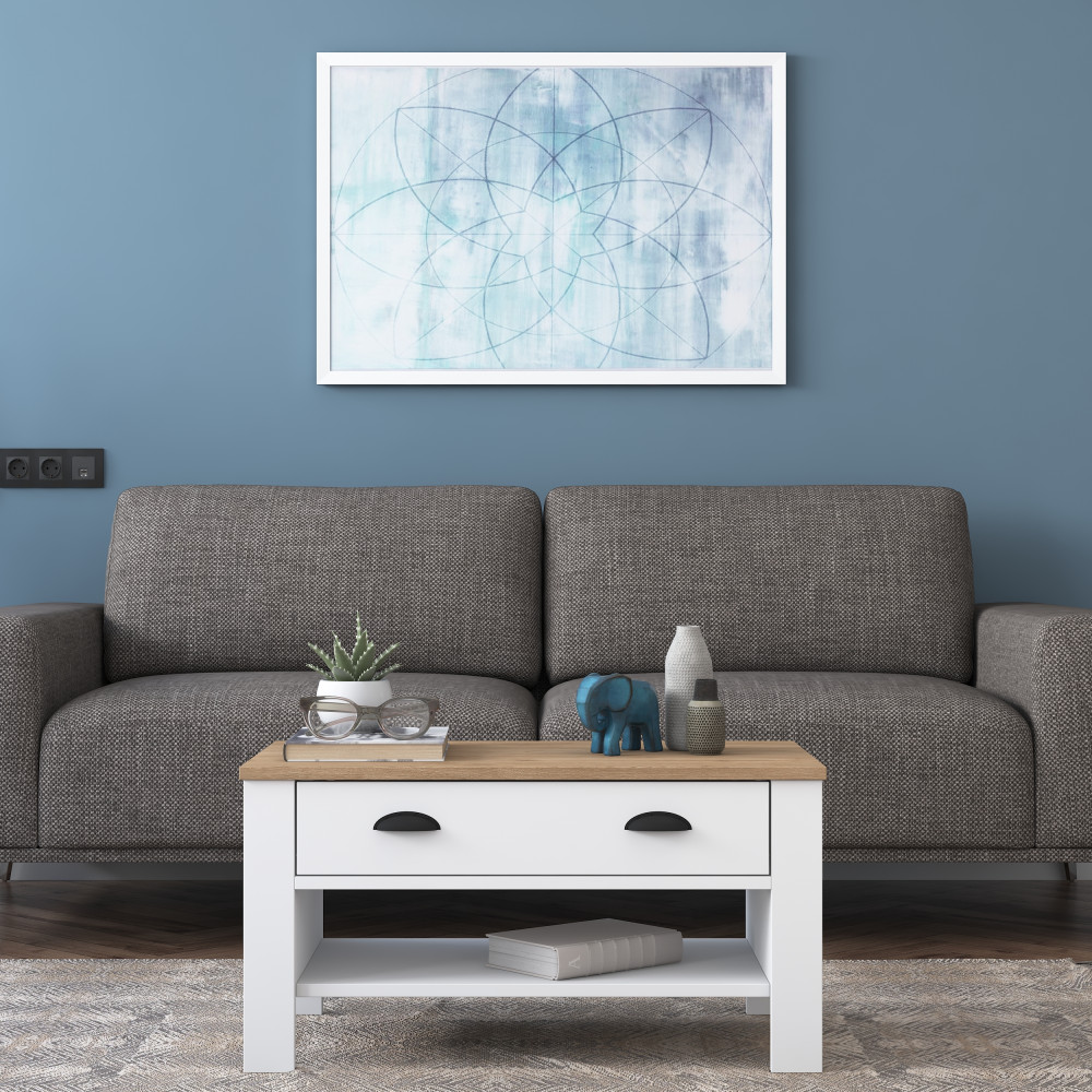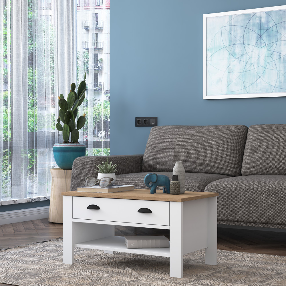 * Les tables centrales offrent un espace supplémentaire pour organiser vos pièces de vie. Grâce au tiroir, vous pouvez ranger de petits objets tels que la télécommande. Vous pouvez compléter votre décoration avec des bougies, des chandeliers de différentes tailles et d'autres objets élégants que vous placerez sur la table basse.