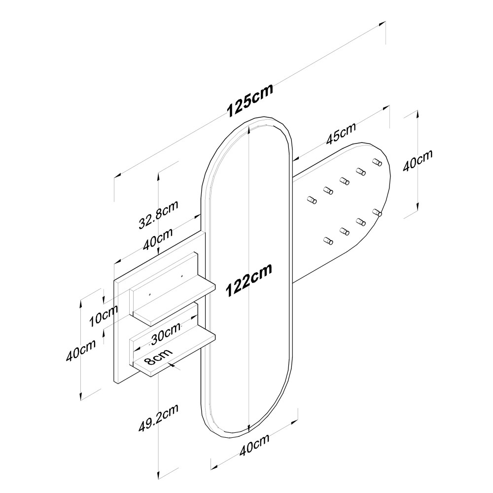 Cintres : Largeur : 125 cm - Profondeur : 8 cm - Hauteur : 40 cm
